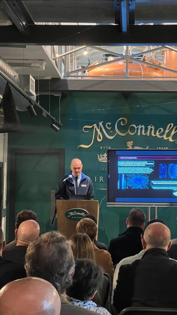 One of the standout moments came from JD Hamill, who delivered a compelling segment on the regional cyber threat landscape. Drawing from recent threat intelligence and local case studies, JD highlighted how Northern Ireland’s businesses are increasingly targeted by phishing campaigns, ransomware, and supply chain vulnerabilities.